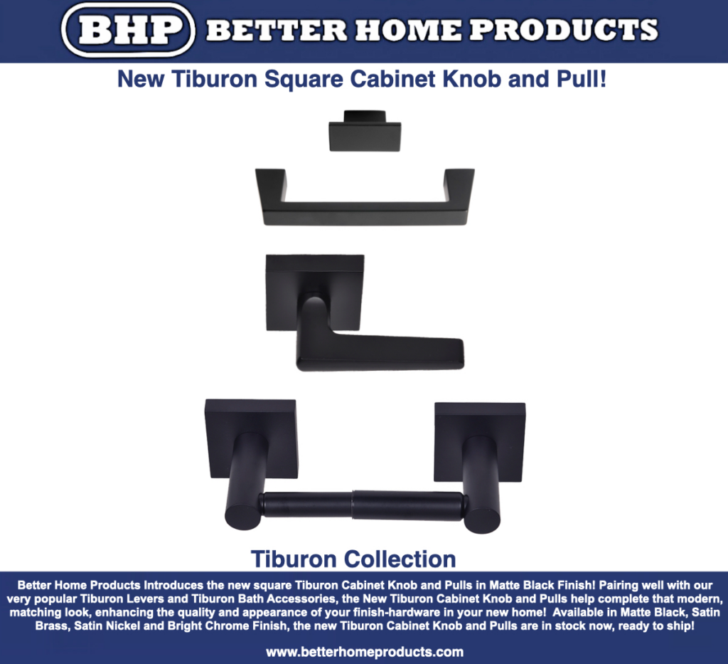 Better Home Products Introduces the new square Tiburon Cabinet Knob and Pulls in Matte Black Finish!
